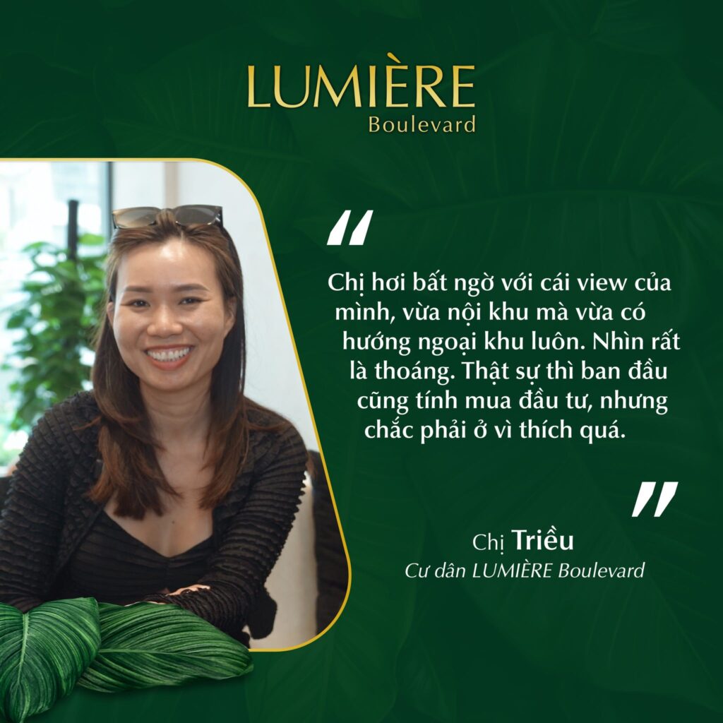 Tiếp nối thành công từ LUMIÈRE riverside tại quận 2, LUMIÈRE Boulevard nâng tầm chuẩn mực sống, mang đến những tiện ích cải tiến sáng tạo, những khu vườn xanh tươi ngập tràn ánh sáng thiên nhiên. LUMIÈRE Boulevard hứa hẹn sẽ là dự án có kiến trúc xanh 3D lớn nhất Thành phố Hồ Chí Minh.