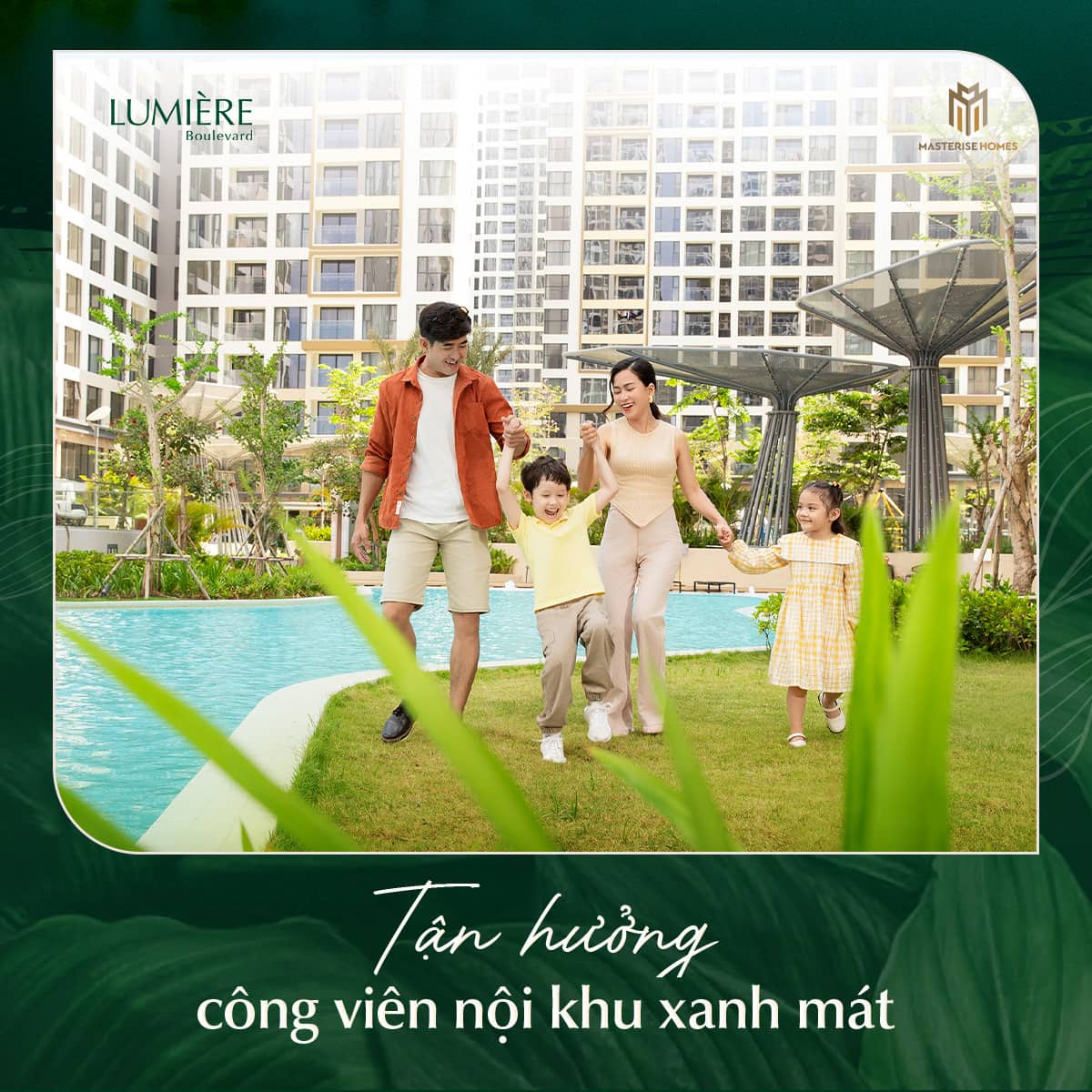 LUMIÈRE Boulevard – Chuẩn sống xanh, đẳng cấp tại Đại đô thị Grand Park LUMIÈRE Boulevard sở hữu hơn 33 tiện ích nội khu đẳng cấp, đáp ứng tối đa nhu cầu sống sang trọng và trọn vẹn. Nổi bật với hồ bơi phi thuyền chuẩn Olympic thiết kế 2 tầng độc đáo, sử dụng công nghệ điện phân muối, cùng phòng gym hiện đại, khu virtual sport với golf và bóng đá cao cấp. Cư dân còn được tận hưởng khu chiếu phim ngoài trời, Kid Room rực rỡ, vườn thảo mộc xanh mát và dịch vụ xe đạp miễn phí TNGO. Đội ngũ quản lý chuyên nghiệp đảm bảo môi trường sống an yên, gần gũi thiên nhiên nhưng vẫn đầy đủ tiện nghi hiện đại.